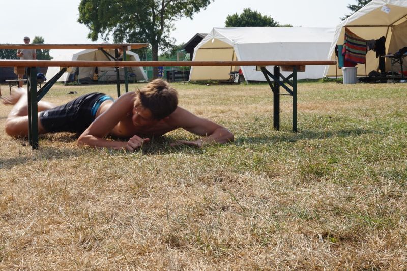 Sonntags wird schon seit eh und je die Lagerolympiade ausgerichtet. Hier treten die Zelte in kleinen Geschicklichkeitsspielen gegeneinander. Der Teamgedanke steht hierbei im Vordergrund. Als Belohnung gab es heute kein Brot zum Abendessen – wir haben gegrillt.