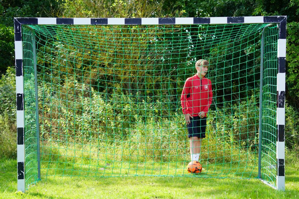 • Mit möglichst wenigen Ballkontakten von hinter dem Tor ins Tor treffen