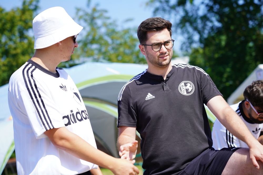 Der erste offizielle Programmpunkt begann mit dem Mittagessen. Im Anschluss zeigte sich auch die Sonne wieder, sodass das nächste Programmhöhepunkt bei angenehmem Wetter stattfinden konnte: „Schlag die Betreuer“ – ein fester Bestandteil des Zeltlagerprogramms. Hier treten die Teilnehmer in verschiedenen kleinen Spielen gegen das Betreuerteam an und sammeln Punkte für ihre Gruppe.